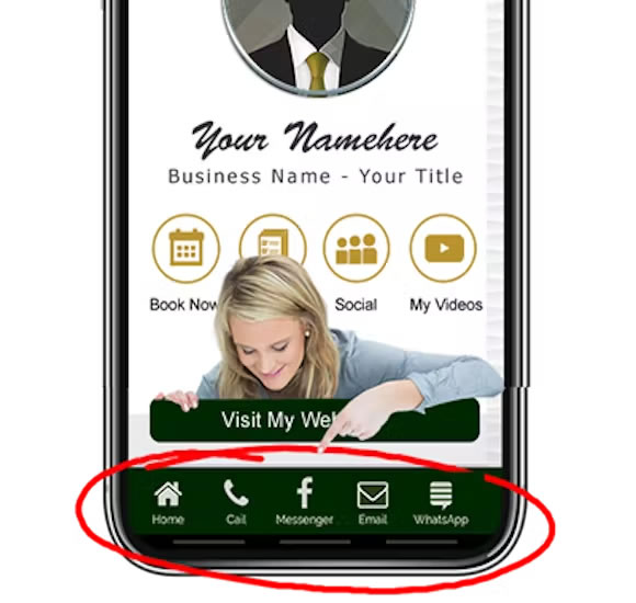 These icons can be configured to allow prospects and clients to quickly connect with you at the touch of an icon. Add as many connect buttons as you like that people can use to quickly connect with you. Or, link individual icons to internal or external web pages.