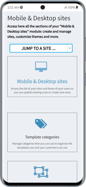 - Comfortably access all platform sections on your smartphone