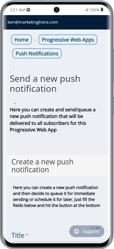 From your smartphone or desktop send on-shot or scheduled push notification messages to your subscribers.